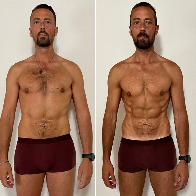 Volevo perdere un poā di chili perchĆ© iniziavo a preoccuparmi per la mia salute. Il lavoro poi mi costringeva a ritmi frenetici e questo non mi aiutava a prendermi cura di me. Ho chiamato Dario perchĆ© volevo che fosse qualcun altro a risolvermi il problema. In fondo bastava fare quel che mi consigliava, preferire certi alimenti,, allenarmi in un certo modo⦠e sarei stato di nuovo bene. Ho perso 20kg e migliorato la ricomposizione corporea. Di questo lo ringrazio, ora capisco quando ĆØ ora di dire basta agli sgarri e ai vizi ed ĆØ il momento di occuparmi di me stesso e del mio benessere.